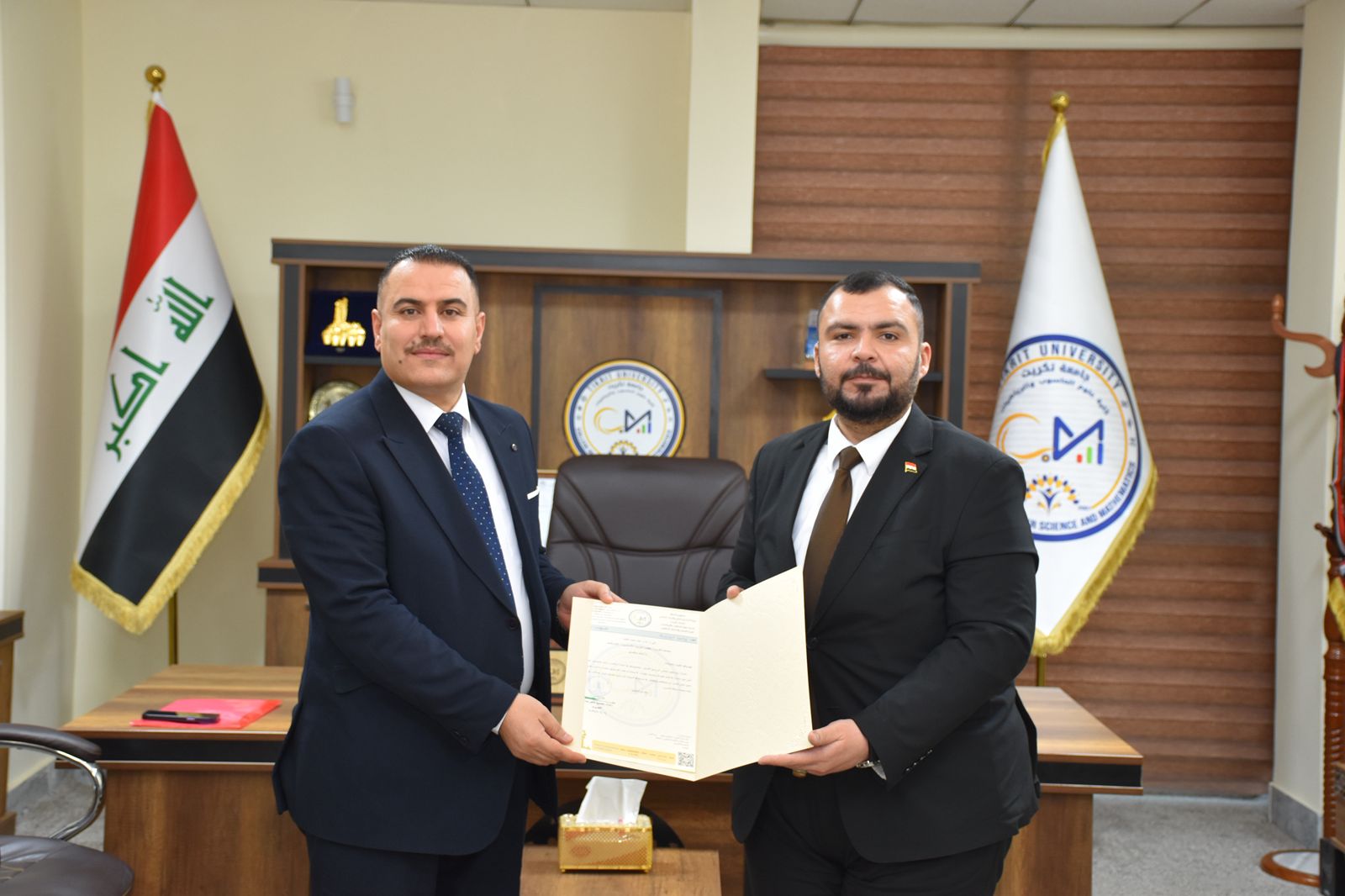 هذا وقد حضر المناقشة عدد من التدريسيين وطلبة الدراسات العليا، من جانبه قدم السيد عميد الكلية الأستاذ المساعد الدكتور محمود ماهر صالح المحترم كتاب شكر وتقدير للدكتور اياد حمد خلف عبد تثميناً لجهوده العلمية في تقييم هذه الرسالة